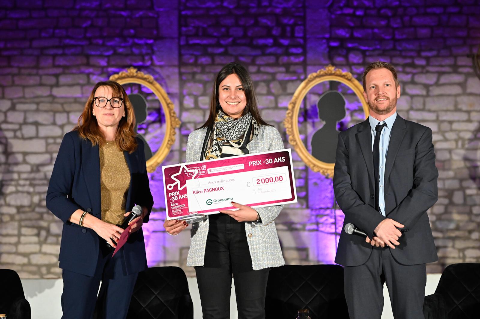 Alice Pagnoux remporte le prix jeune -30 ans (2.000 €) de la vingtième édition du concours Initiative au féminin pour la création de « SELLERIE COLL », atelier de sellerie à Fesches-le-Châtel (25).